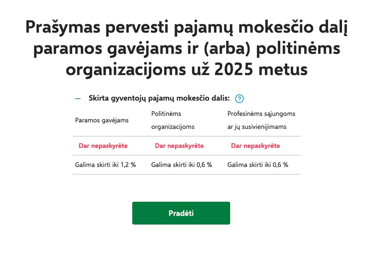 — В поле «Mokesčio dalies paskirtis» («Цель налоговой части») напишите «Paramos gavėjmas» («Бенефициар»).