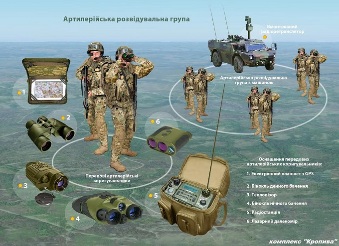– Спутниковый терминал Starlink, программно-аппаратный комплекс управления огнём, оптические приборы разведки.