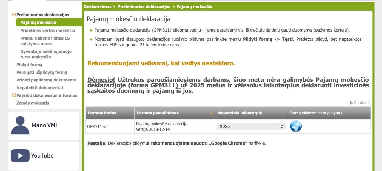 1. Заполнить заявку можно только онлайн через систему электронного декларирования EDS. Заходим на сайт VMI (https://deklaravimas.vmi.lt/) и нажимаем «Prisijungti prie EDS» («Войти в систему EDS»).